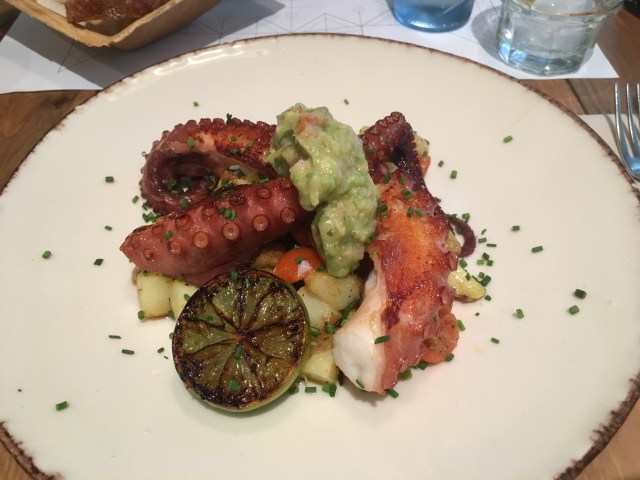 . . . followed by grilled octopus with avocado, tomatoes and lime.