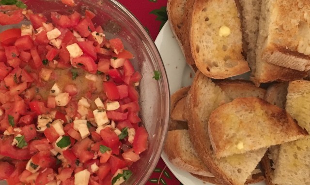The first thing you do is make home made bruschetta.
