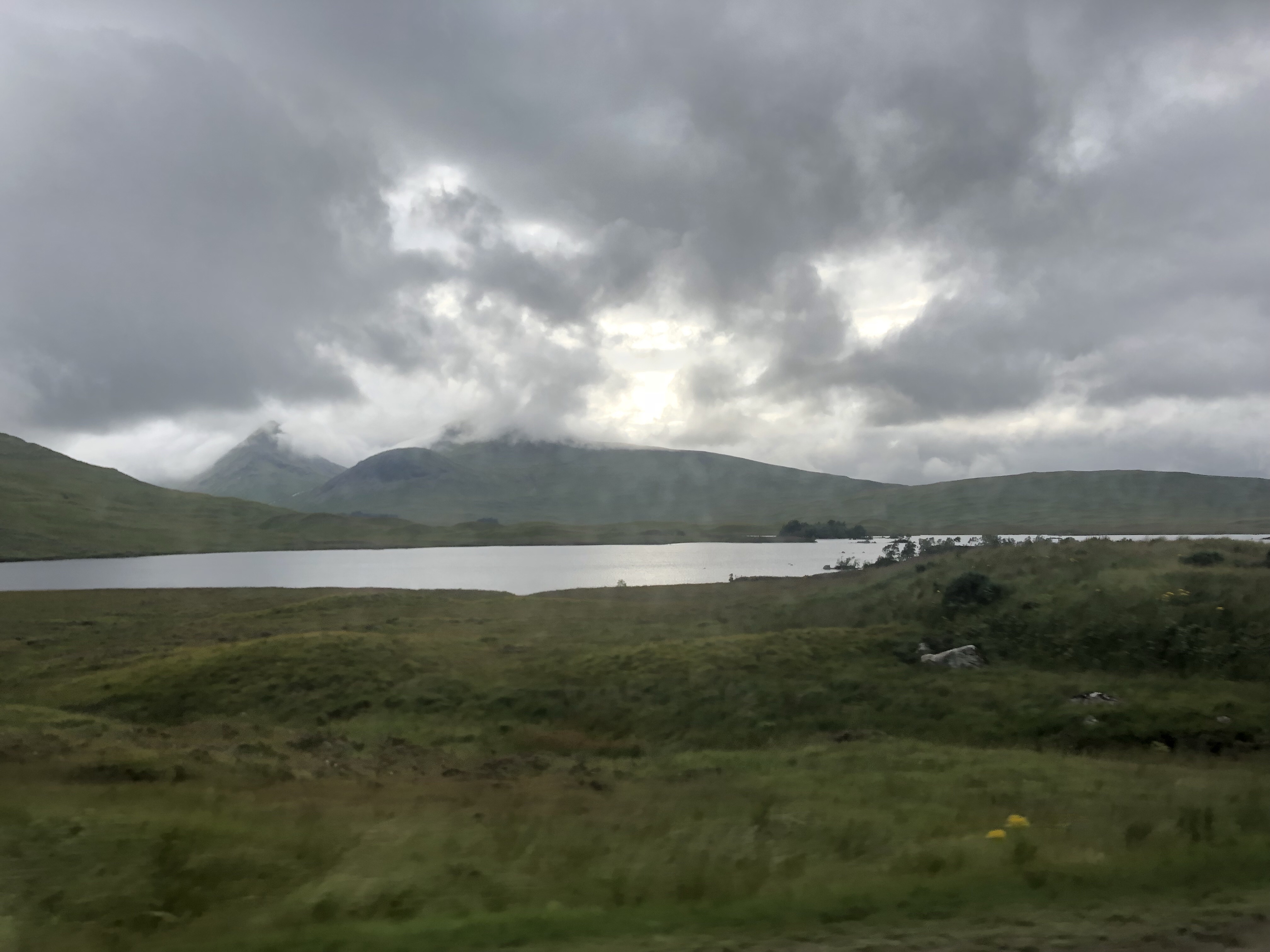 Our Three Peaks weekend began with a long train ride to Glasgow, where we rendez-voused with some additional hikers and our driver. We piled into the van and headed north into the Scottish highlands. We passed Loch Lomond and entered a magical world of green hills, silvery lakes and streams, and low grey clouds. Eventually we arrived at Fort William, a tiny outpost of civilisation that was full of prospective hikers like ourselves. We got dinner at the pub and went to bed early, since we would be up before dawn for our hike the next day.