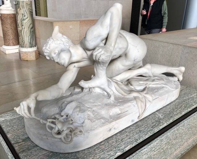 It had been a few years since my last visit, so I covered the collections pretty thoroughly. I realize this is heresy, but I came to the conclusion that it just isn’t my favorite museum. Definitely an extraordinary collection, but I don’t love the way the space is laid out and how the traffic flows. And my tastes and interests have shifted over the years so that I’m less drawn to the impressionists that the Orsay is so known for. Instead I lingered among the marbles on the mezzanine and thought, “well, first of all, if I were trying to pick up some snakes with a stick, I’d probably put some clothes on and find a more comfortable position; but then again, if I had a bod like that, maybe I’d be looking for opportunities to go ‘free range’, too.”