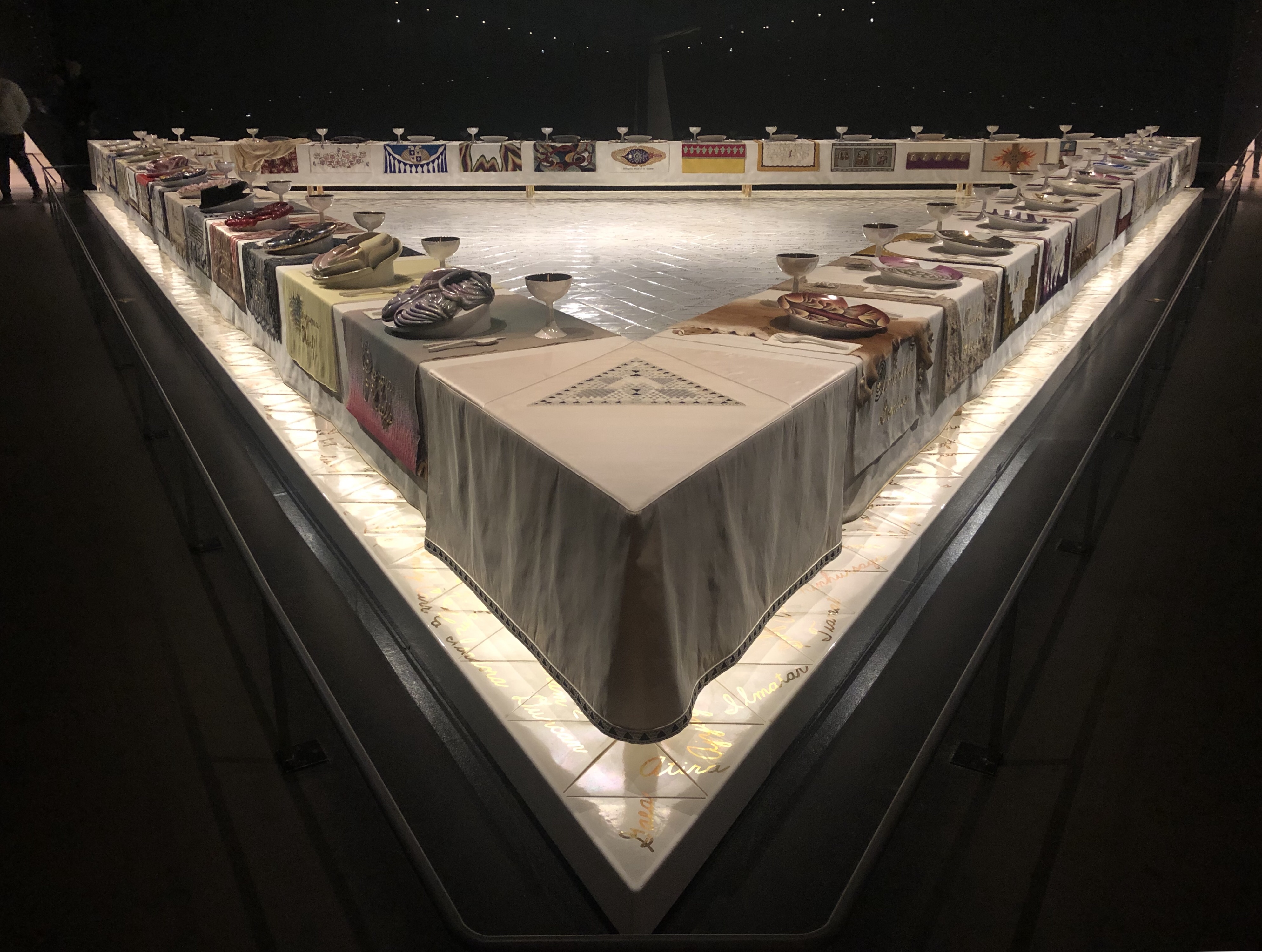 Naturally we started with a visit to the Feminist Art exhibition and Judy Chicago’s amazing Dinner Party. Dan had never seen the work before, but he’s currently working on a collaboration with the artist for his museum in Phoenix, so he was all the more delighted to discover it.