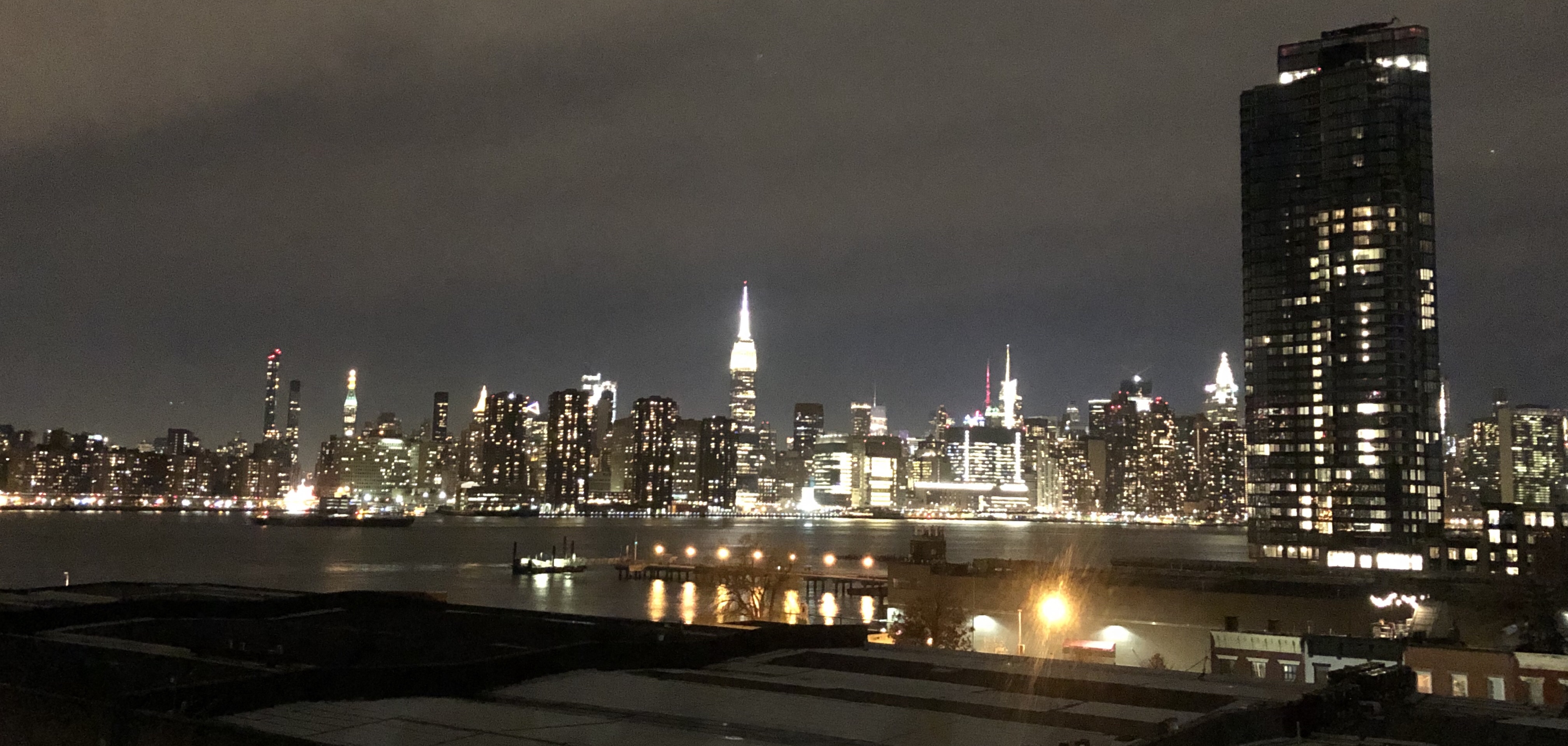 And really of course it didn’t matter at all because the wedding was absolutely beautiful. Nicole was radiant, Bruce touchingly emotional, and the Catholic wedding service blessedly short. We rang them out of the chapel with festive jingle bells before piling into trolleys that took us to a rustic industrial warehouse with dance floor and breathtaking views of Manhattan.