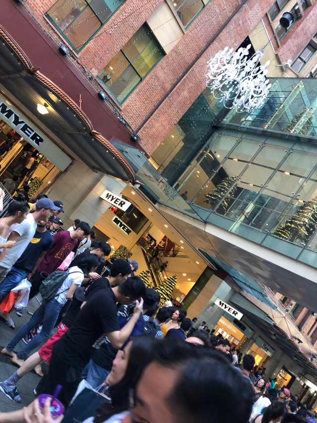 We zipped through the Museum of Contemporary Art, which had some nice pieces and a terrific gift shop, before making our way down town for some pre-beach shopping — neither of us had brought beach towels or other beach accoutrements — and we quickly discovered that Boxing Day is a day of sales and chaos. So many people!!