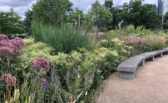 On the far eastern end of London is the sprawling park area where the 2012 Olympics were held. Normally this would not be a draw for me, but I learned that some famous garden designers — including the Dutch designer Piet Udolph — have made some gardens there, and so this weekend I finally made the schlep.