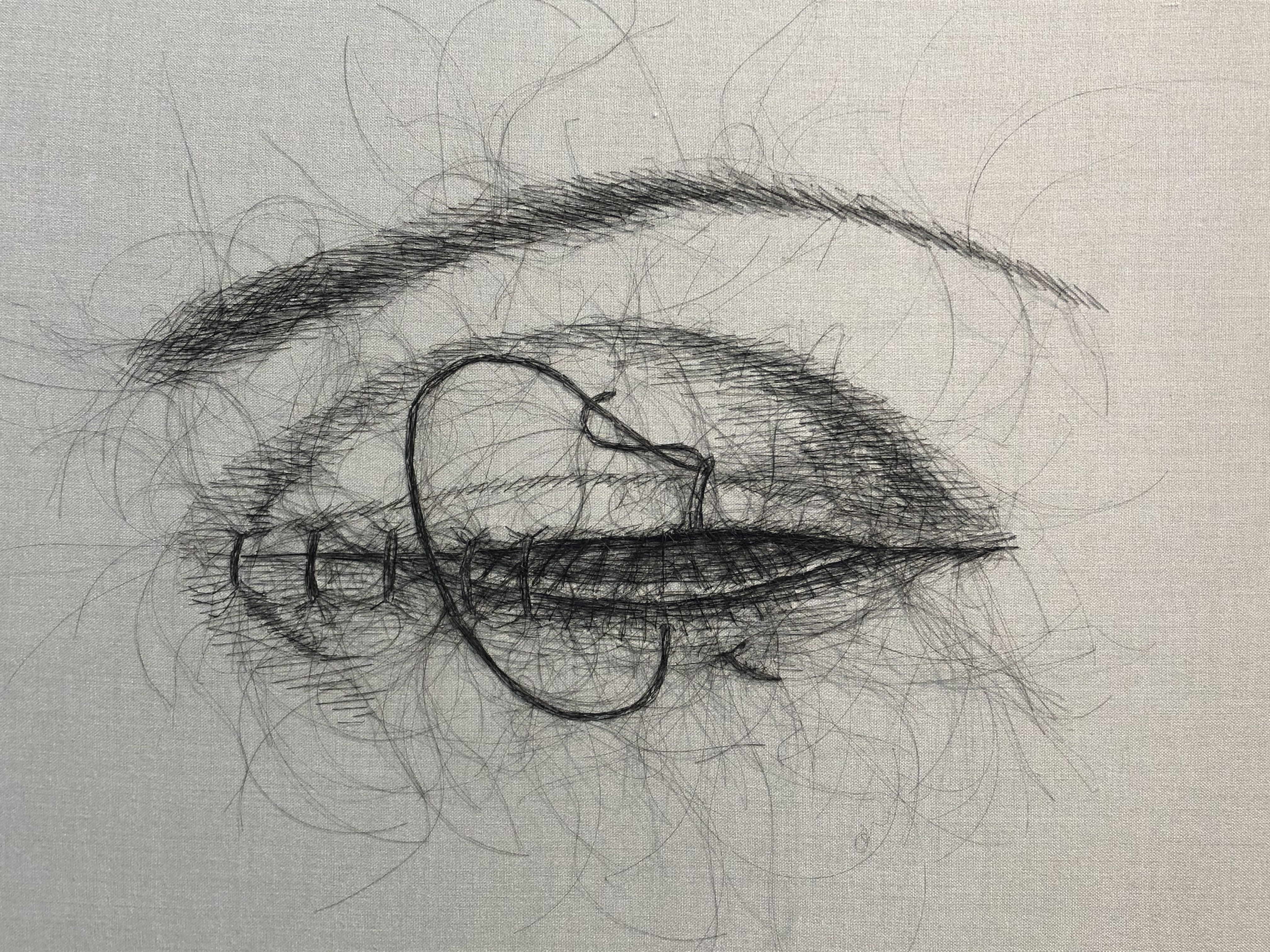 Also terrific, in a more terrifying way, was the Angela Su gallery showing some disturbing pieces that had been embroidered with human hair. They reminded me of the crafts that pioneer women created with hair from their brushes, only scarier.
