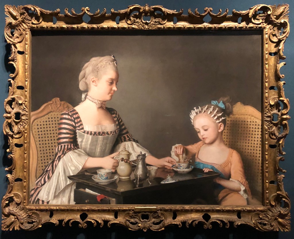 It’s all in pastels and shows a mother and daughter at breakfast — and it captivated me. First because of the lovely informality — the little girl still has her hair wrapped in rags to create ringlets! But then because I realised I had never really paid attention to pastels before. I had never thought of pastels as something for real art, only the types of childish drawings I had done as a child — more akin to sidewalk chalk than something you’d see in a museum. But this material was luminous and soft, and also so clear and sharp and intelligently drawn, and so durable after hundreds of years. It was almost as if the material was enacting a commentary on the women it depicted — they may appear delicate and soft, but they’re just as real and sharp and lasting as the many men (painted in oils) who populated the walls around them.