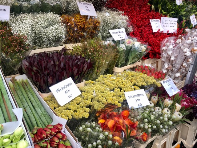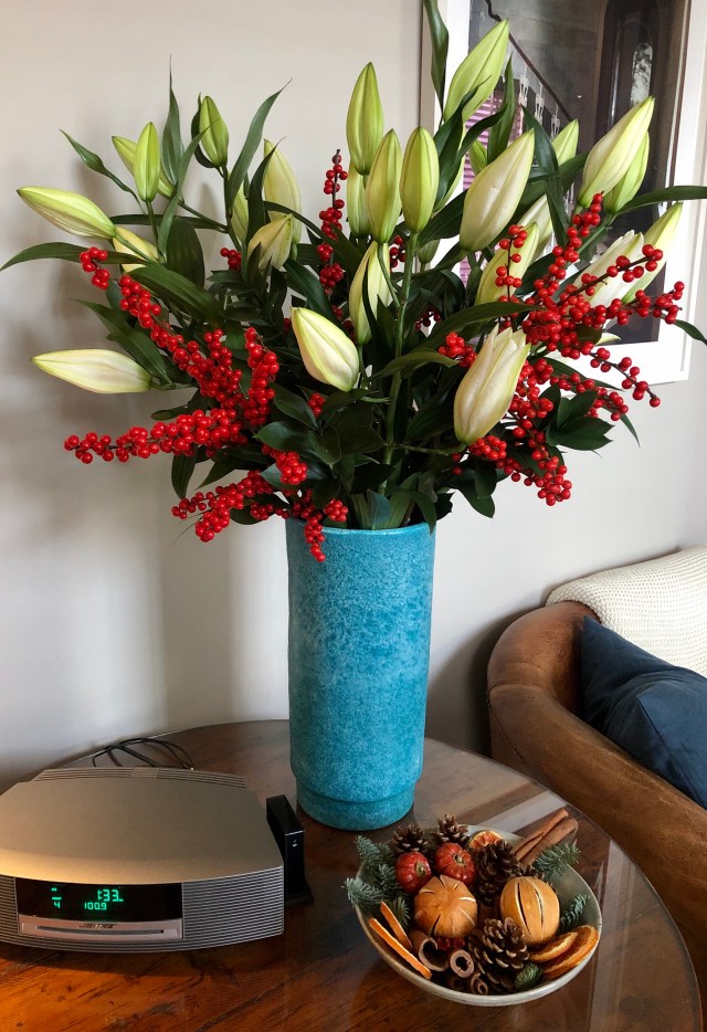 My favourite part of doing Christmas in London is going to the Columbia Road Flower Market and loading up on festive flowers. Everything about it is just the best: the early morning trek to East London, the hunt through the stalls for the best deal on berries, the delicious feeling of resisting temptation, the struggle to get everything home after not resisting enough, the cutting and arranging, the realisation that I still don’t have the right vase for amaryllis…