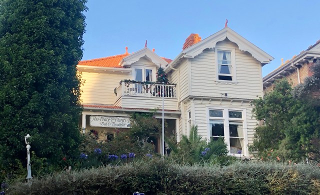 By this time the sun was starting to get low and my jet lag harder to ignore. I hopped back in the car and drive around the bay to Devonport, where I would be staying at the Peace and Plenty Inn. The village turned out to be completely charming, with shops and restaurants and a little park tumbling down the hillside to a waterfront that looked back toward the Auckland skyline.