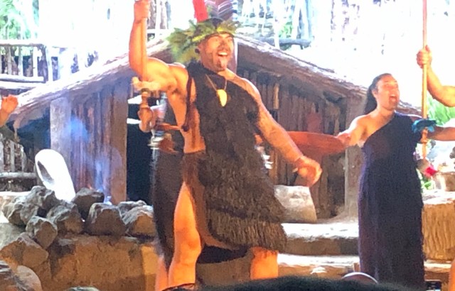 Friday night, after ziplining, we went out to a nearby Maori cultural center to have dinner and learn more about the Maori traditions. We were led down a small ravine to the banks of a crystal-clear stream that flowed from a nearby freshwater spring. The Maori men rowed up the river in a traditional boat and traditional dress . . .