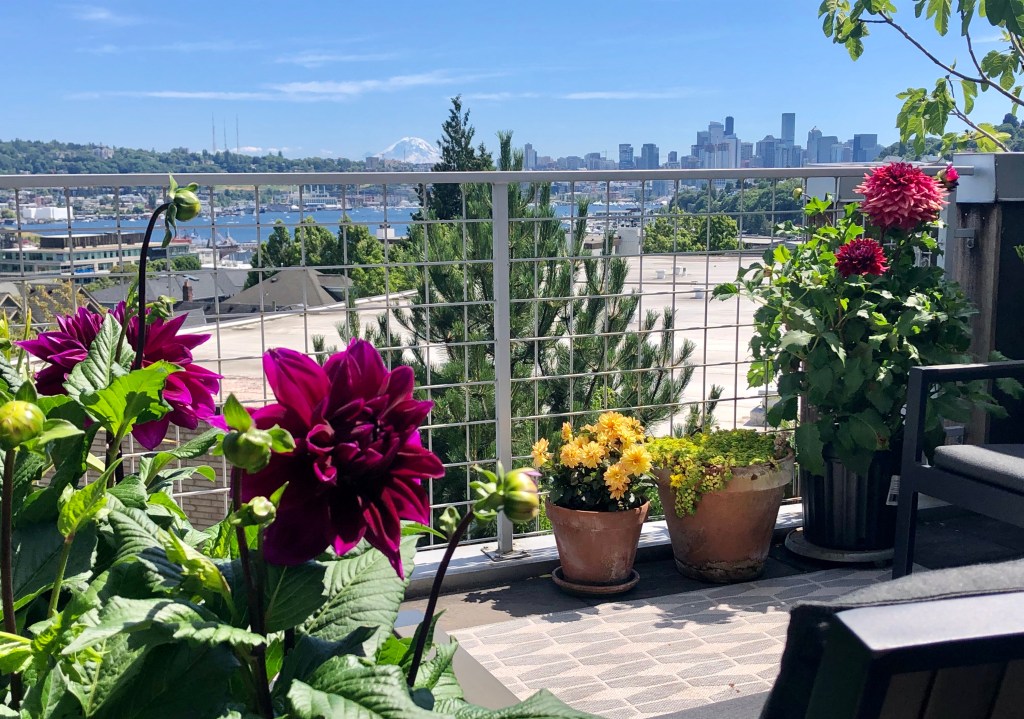 Sometimes you run out to pick up a few necessaries for grilling with friends on the roof and realise before you even get to the condiment aisle that dinner-plate dahlias should have been at the top of the list. An oversight quickly remedied… 😉