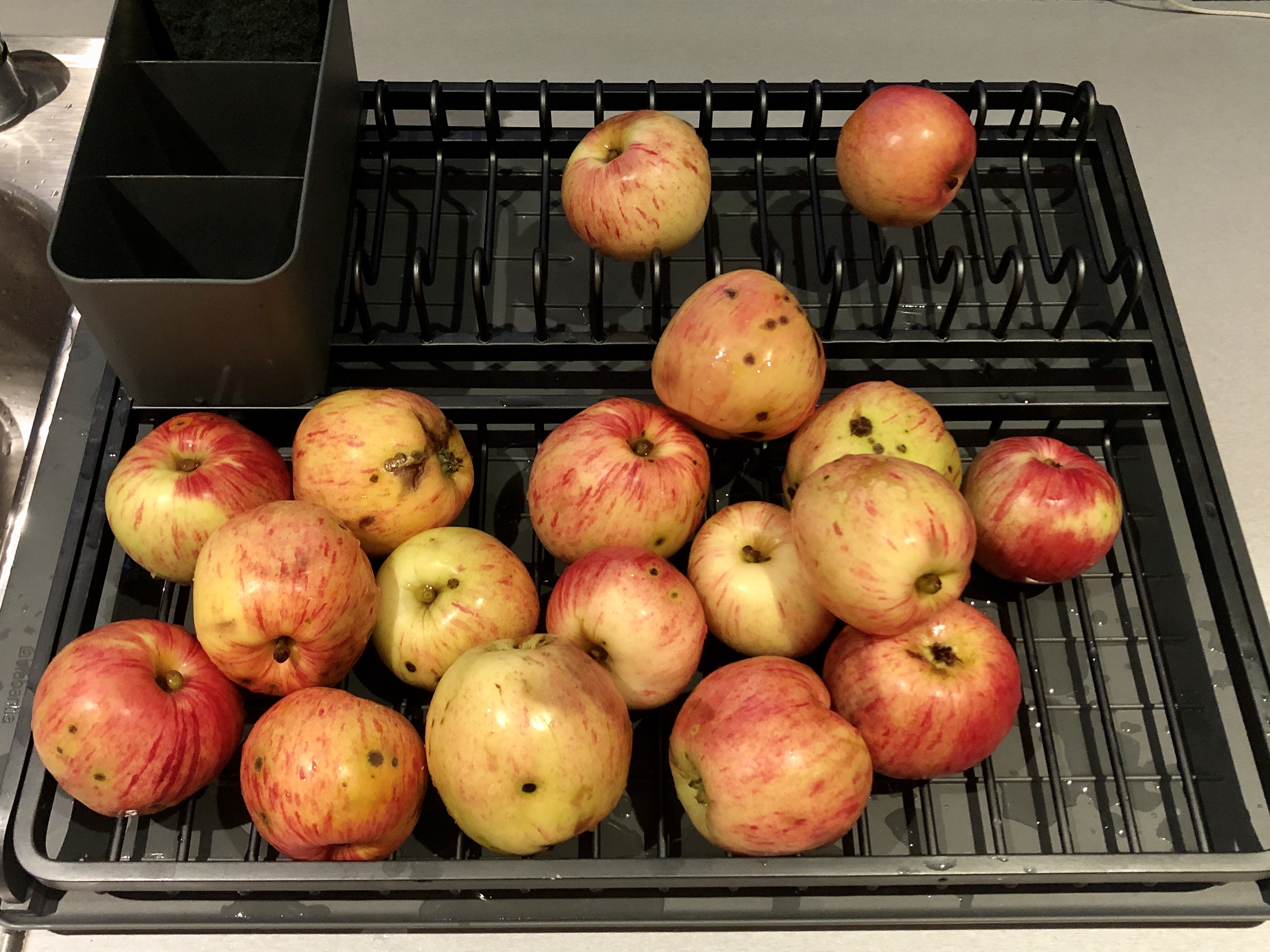 She and Amy both emphasised that Gravensteins don’t keep as long as other apples, so we got right down to pie making! By which I mean that Justin made the pie and I provided moral support.