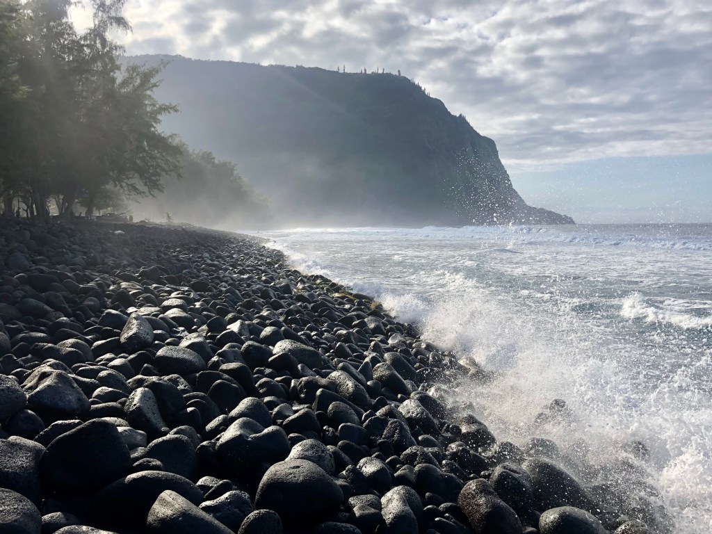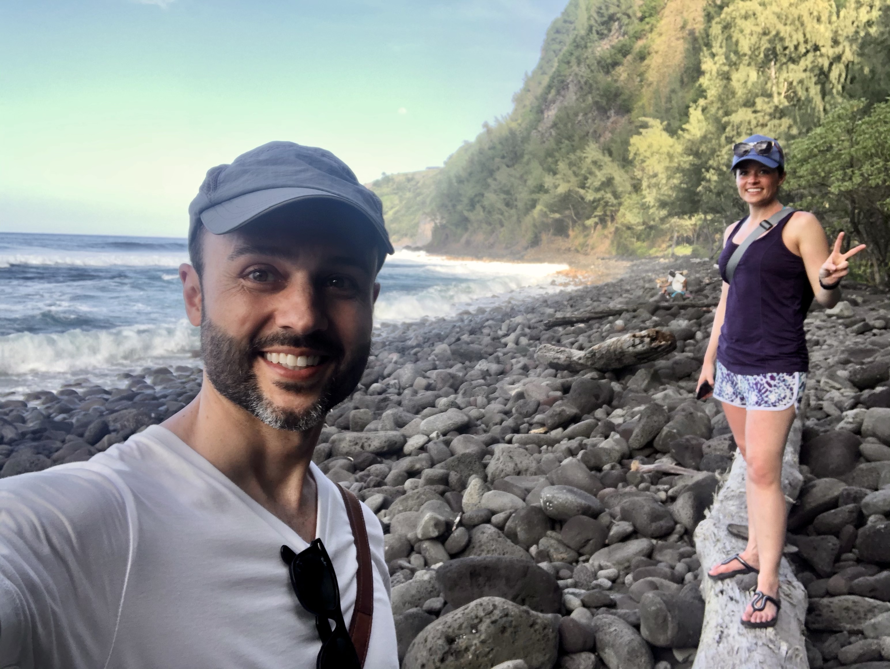 Waipio of a deep, verdant valley walled by cliffs and boasting a dramatic black sand beach. The views from on high are stunning and the experience below accessible only for those with four-wheel-drive or who are willing to clamber down on foot. We opted for the latter and were not disappointed! The place was incredible and the 26% grade of the road intense—we decided that if we lived here we’d do that hike at least once a week to stay fit 😜