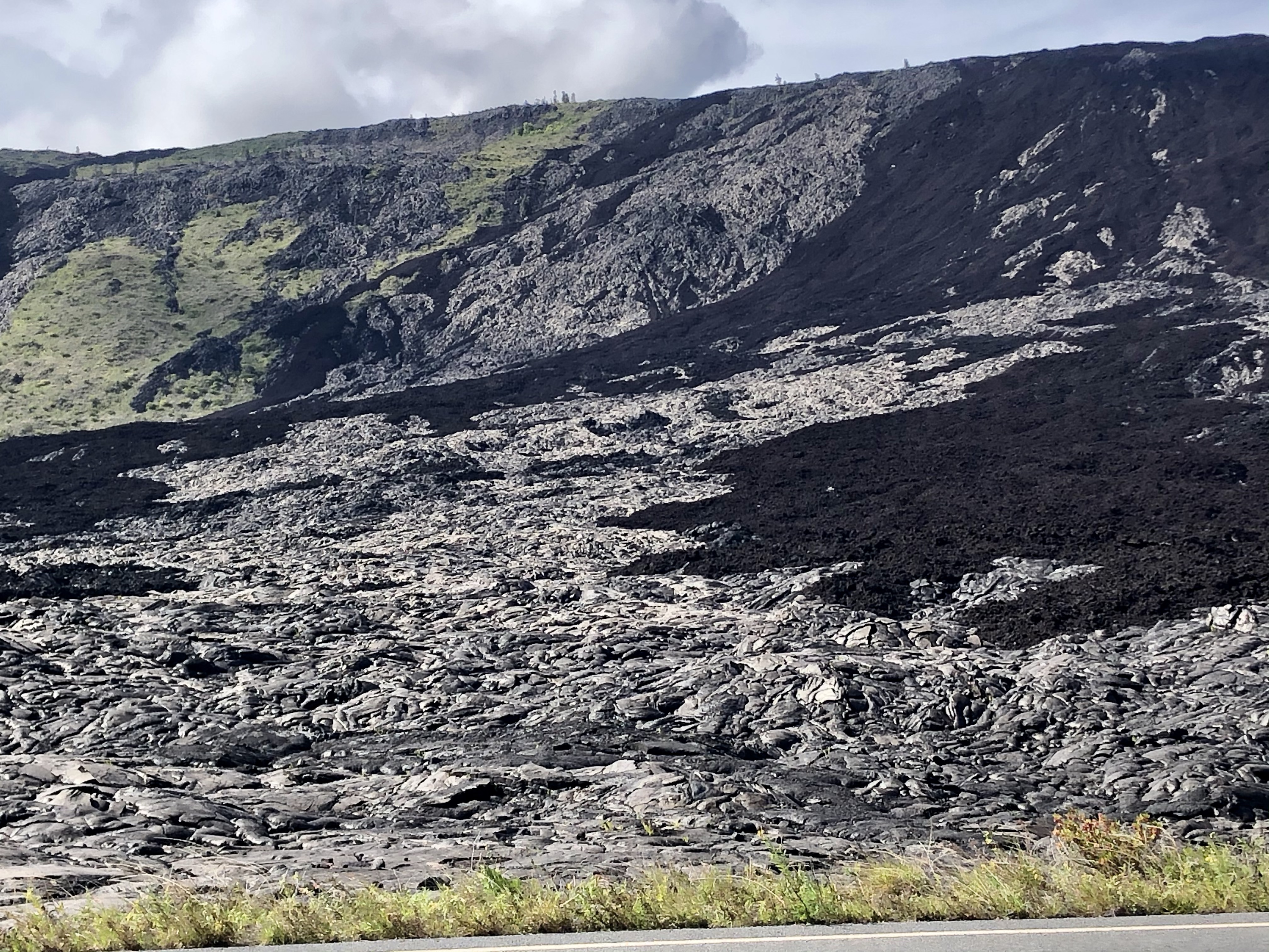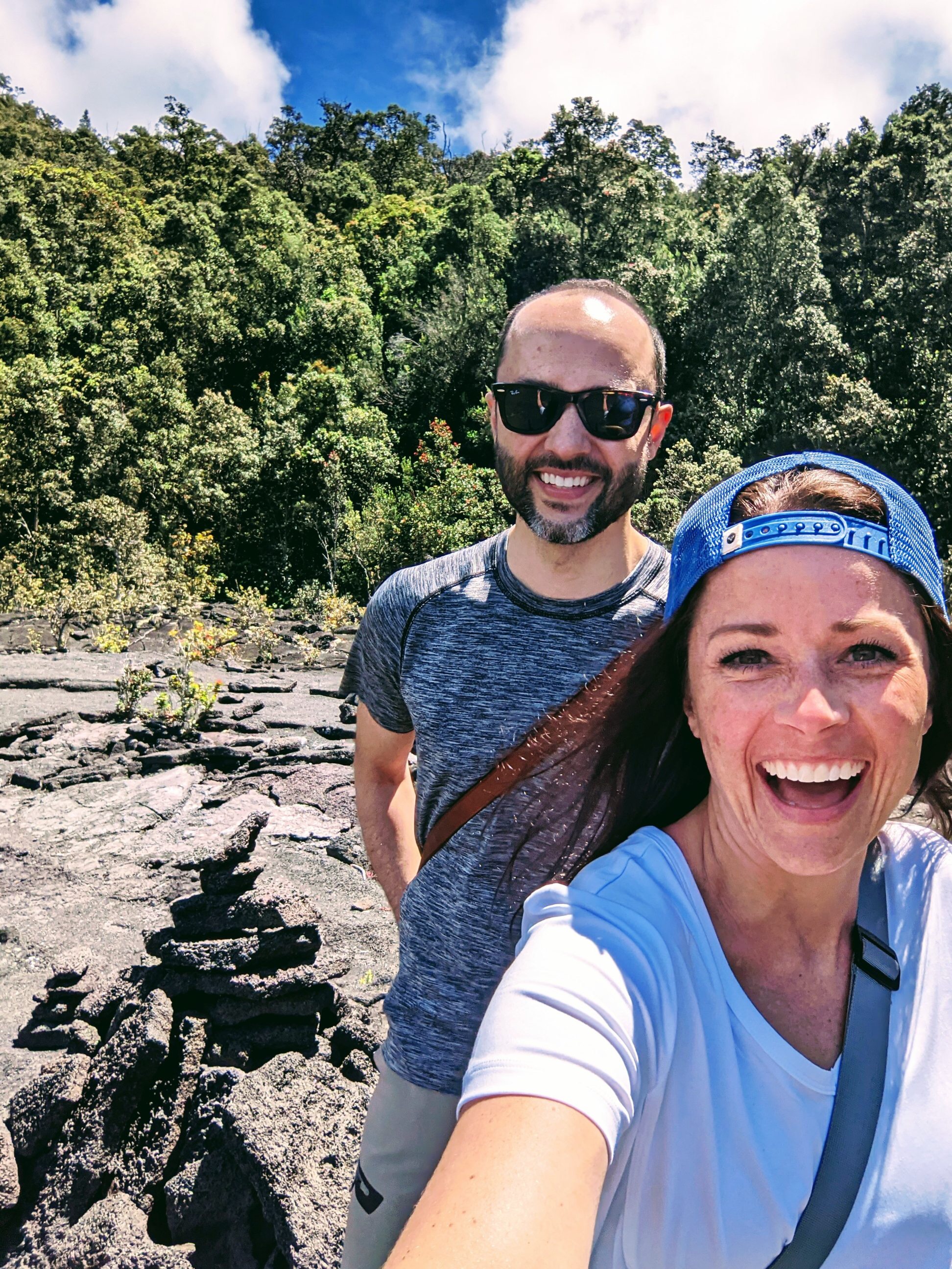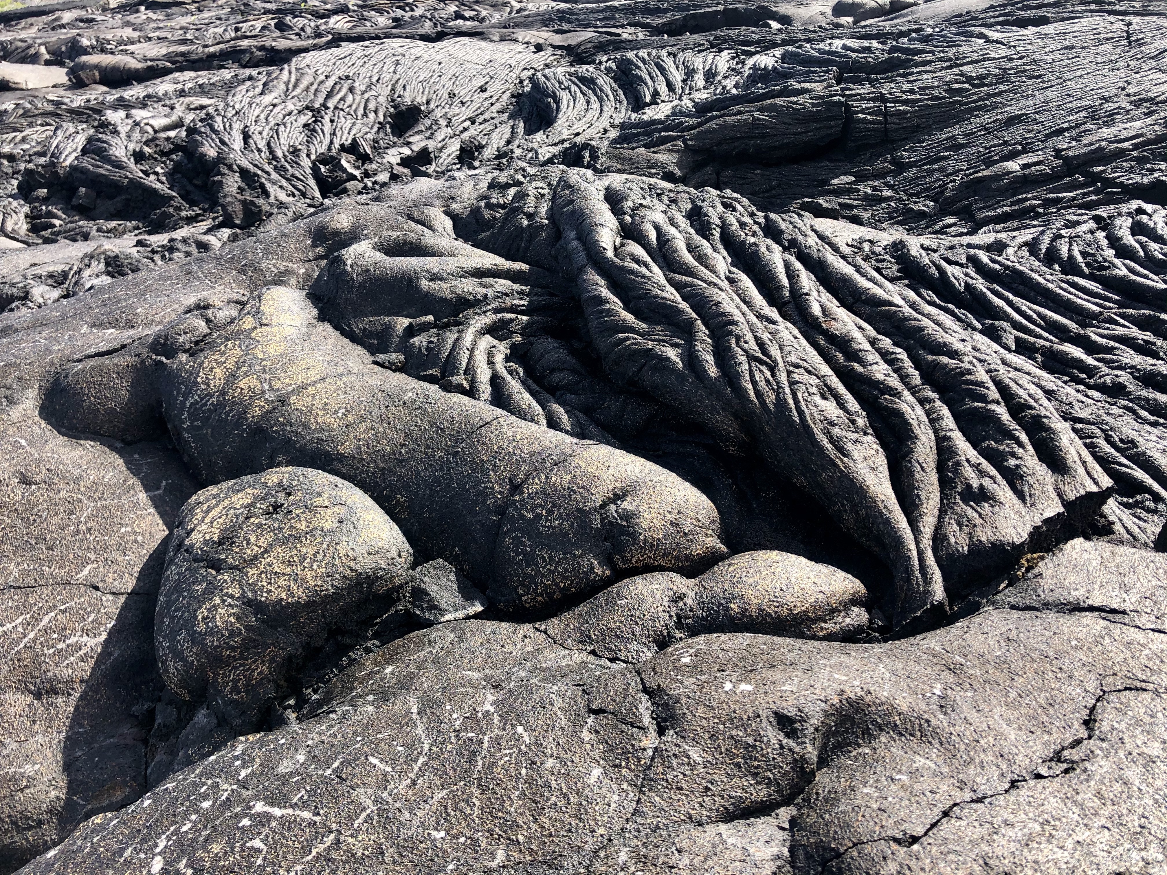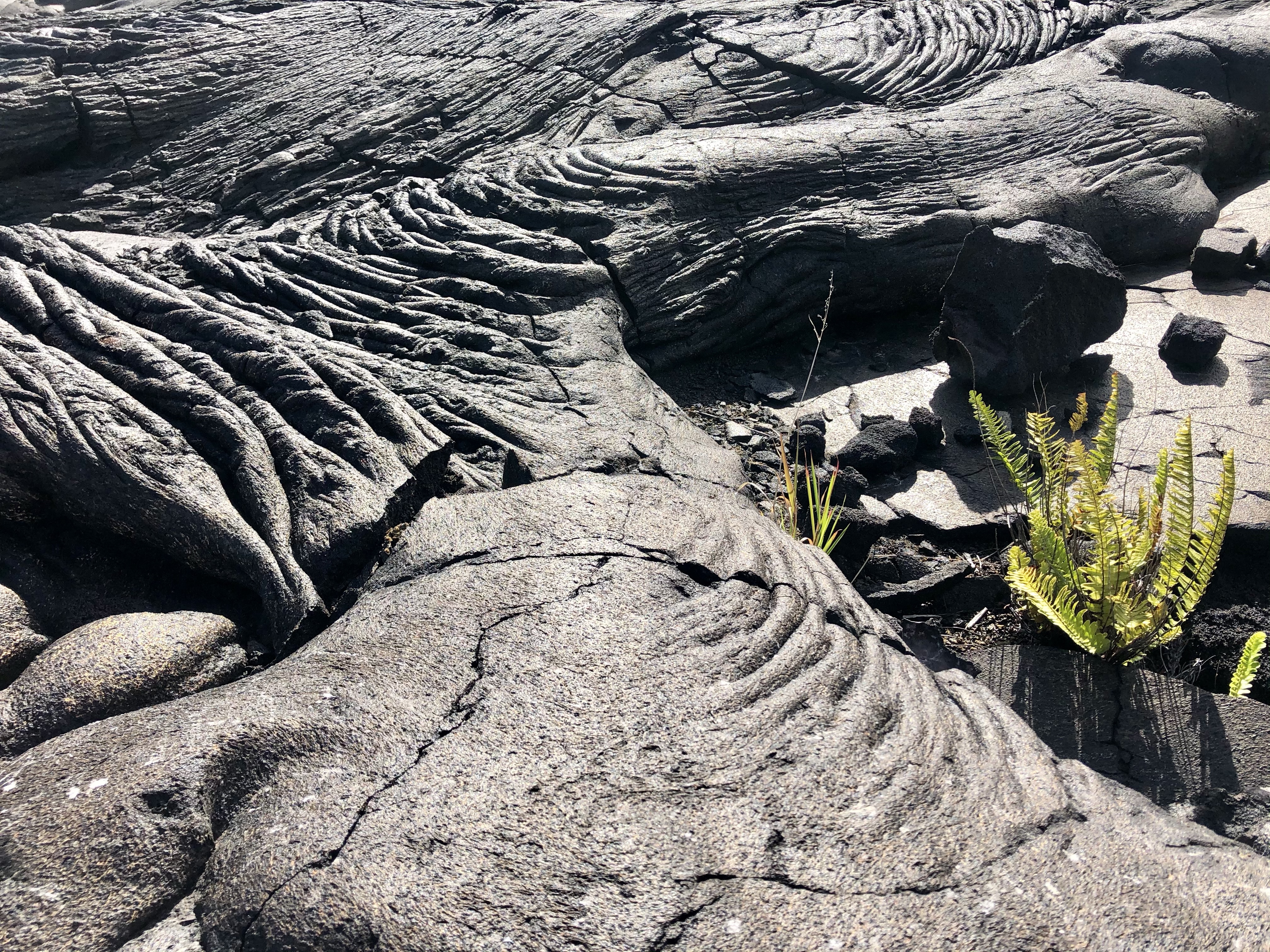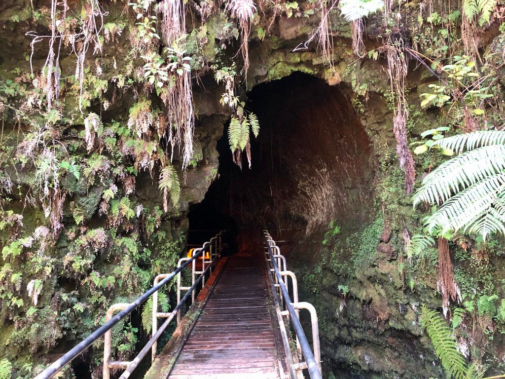 We dedicated a whole day to visiting Volcanoes National Park. It’s in the opposite side of the island and kind of a schlep to get to, but it wouldn’t have done to have missed it. The forecast predicted rain, but very little of it fell while we were outside the car. And while there was no flowing red lava to see, we happened to arrive on the first day of reopening for the subterranean lava tubes and miraculously had them all to ourselves. In fact, that’s where we started our visit. The vibe was long and dark and drippy with water and hanging roots—appropriately Indiana Jones!