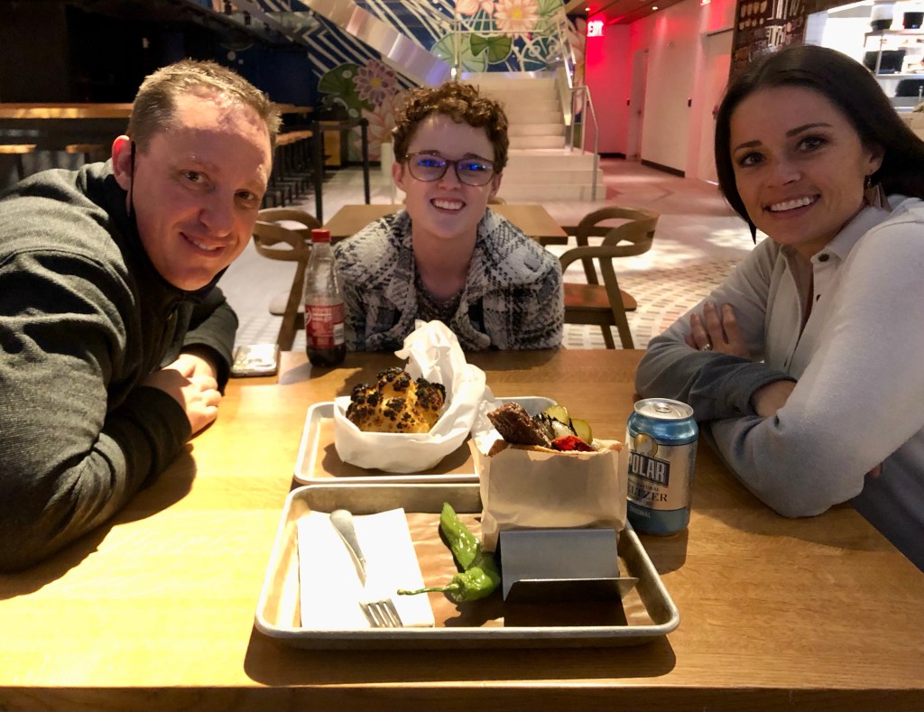 Alas, as we were wiping the last of our tzatziki sauce from our fingers calamity struck: a call from Broadway telling us that Hadestown had been canceled due to breakthrough covid cases. Tears and despair amongst the teenage set! But ever resourceful, we hied ourselves to the TKTS booth and got tickets to A Jagged Little Pill which was an enjoyable reminder of 90s angst. And as much as Brynn had hoped to stay miserable for a while longer, she quickly discovered that even if it wasn’t her first choice, Broadway is Broadway and therefore on a level she had never seen before; in other words: mind blown.