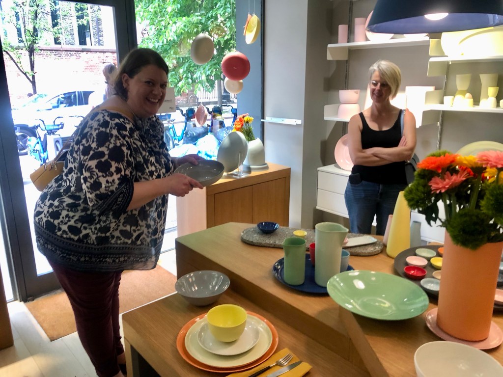 Naturally one doesn’t leave a store like this empty-handed. I exercised great restraint and limited myself to only a few mid-sized serving bowls that I was confident would fit as a carry-on. This was Bryn’s first encounter and she came away with a little collection of carafes.