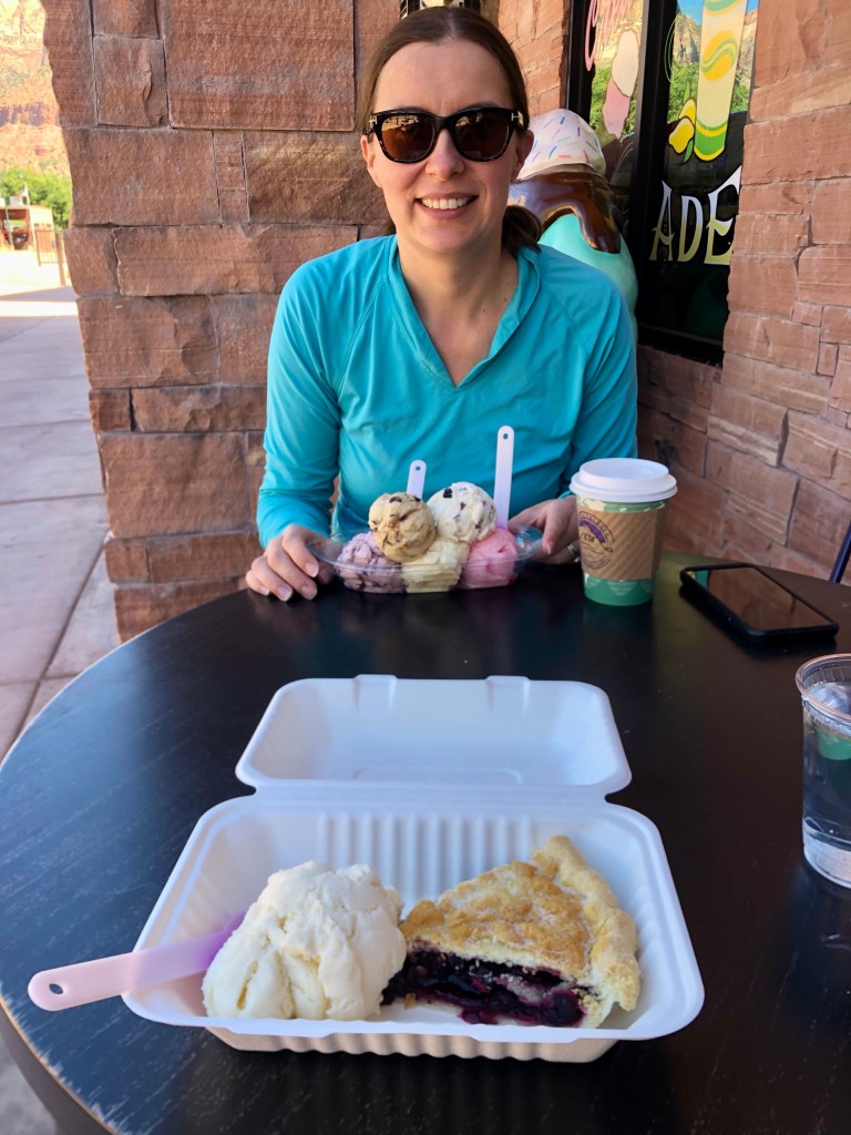 Up again in the wee hours, out with the first shuttle, and on the trail before dawn. Today we did three different hikes, with snacks and naps and a healthy serving (or five) of ice cream in between. Vanessa’s step-counter says we did more that 30,000 steps over more than 12 miles. Another fun day in Zion!
