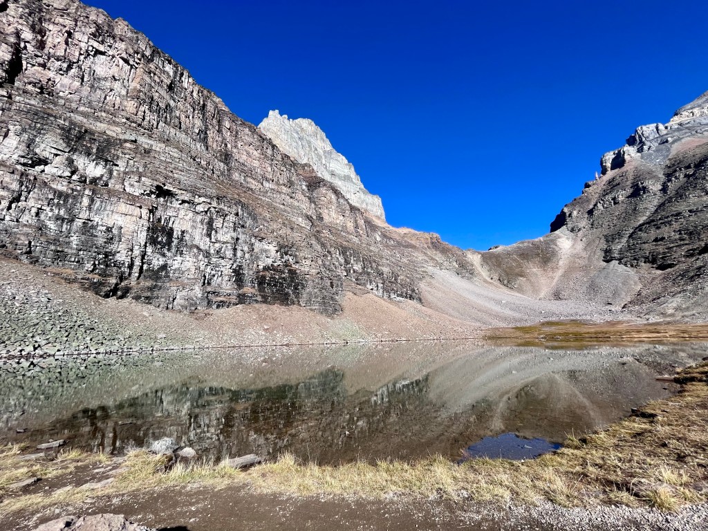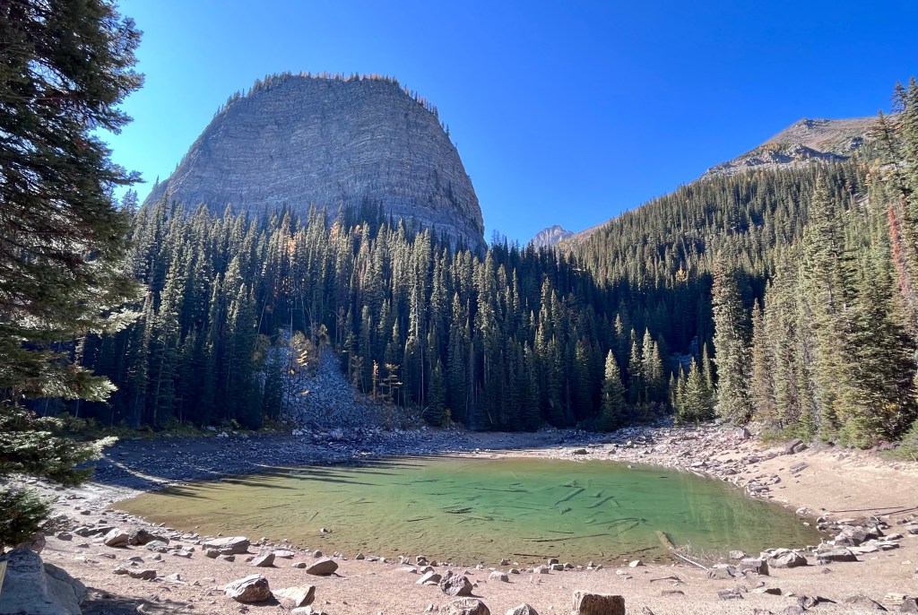 Today was an exercise in travel adventures that consisted of (1) reading the weather forecast and deciding that we needed to throw out our plans for today and instead do what we’d planned for tomorrow, (2) getting up way before the crack of dawn to drive from Canmore up to Lake Louise where we embarked on a complicated series of shuttle buses for which we had bought all the right tickets for none of the right times/directions but didn’t let that stop us from doing what we wanted to do anyway, and (3) having an absolutely fantastic day of hiking and lakes and perfect weather and doing everything we set out to do and more.