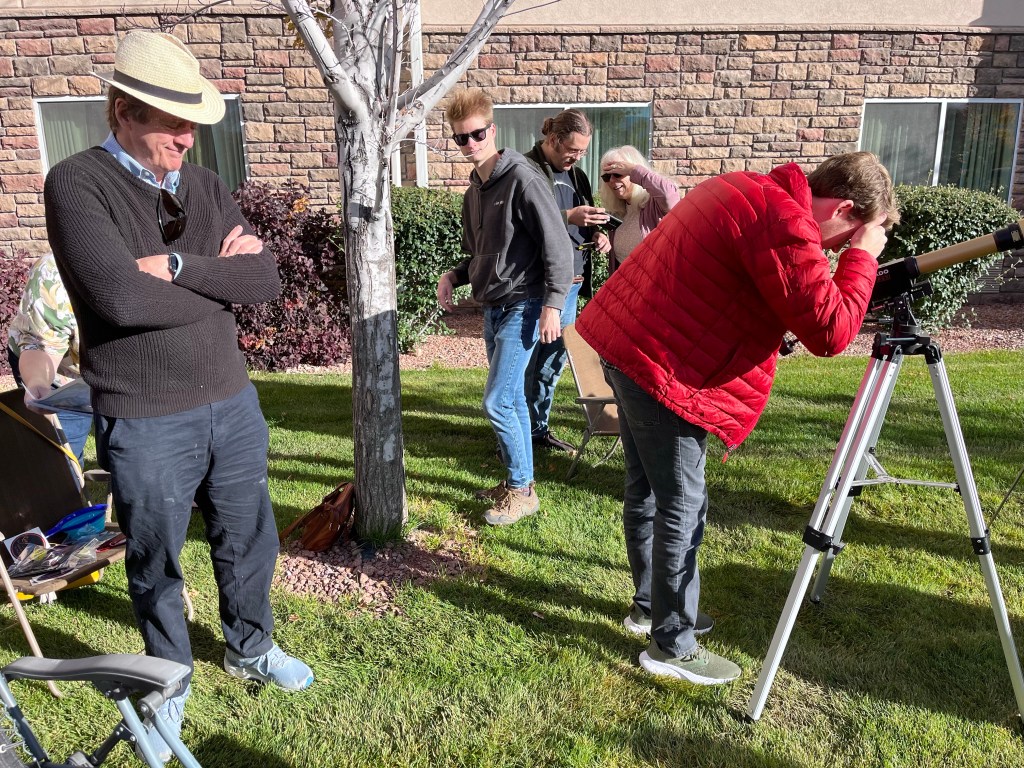 There’s not much to do in Richfield, so we turned in fairly early, and then got up early to be ready for the eclipse. By then Amanda’s aunt’s family has joined us so we had a good group to set up on the hotel lawn. We had lawn chairs, telescopes, special sunglasses, and extra jackets and blankets for when the sun went dark and things got cold.