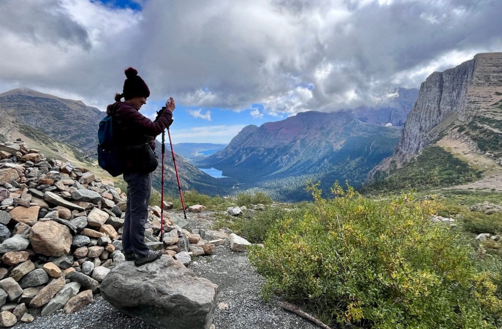 We started before dawn at the Many Lake Lodge, just in time to see the dawn light on the mountain. From there it was one long ascent past several lakes to Grinnell Glacier, where it was freezing cold and windy! In the way back the sun came out and transformed the landscape we had just seen—it was fantastic. Overall 12 miles round trip.