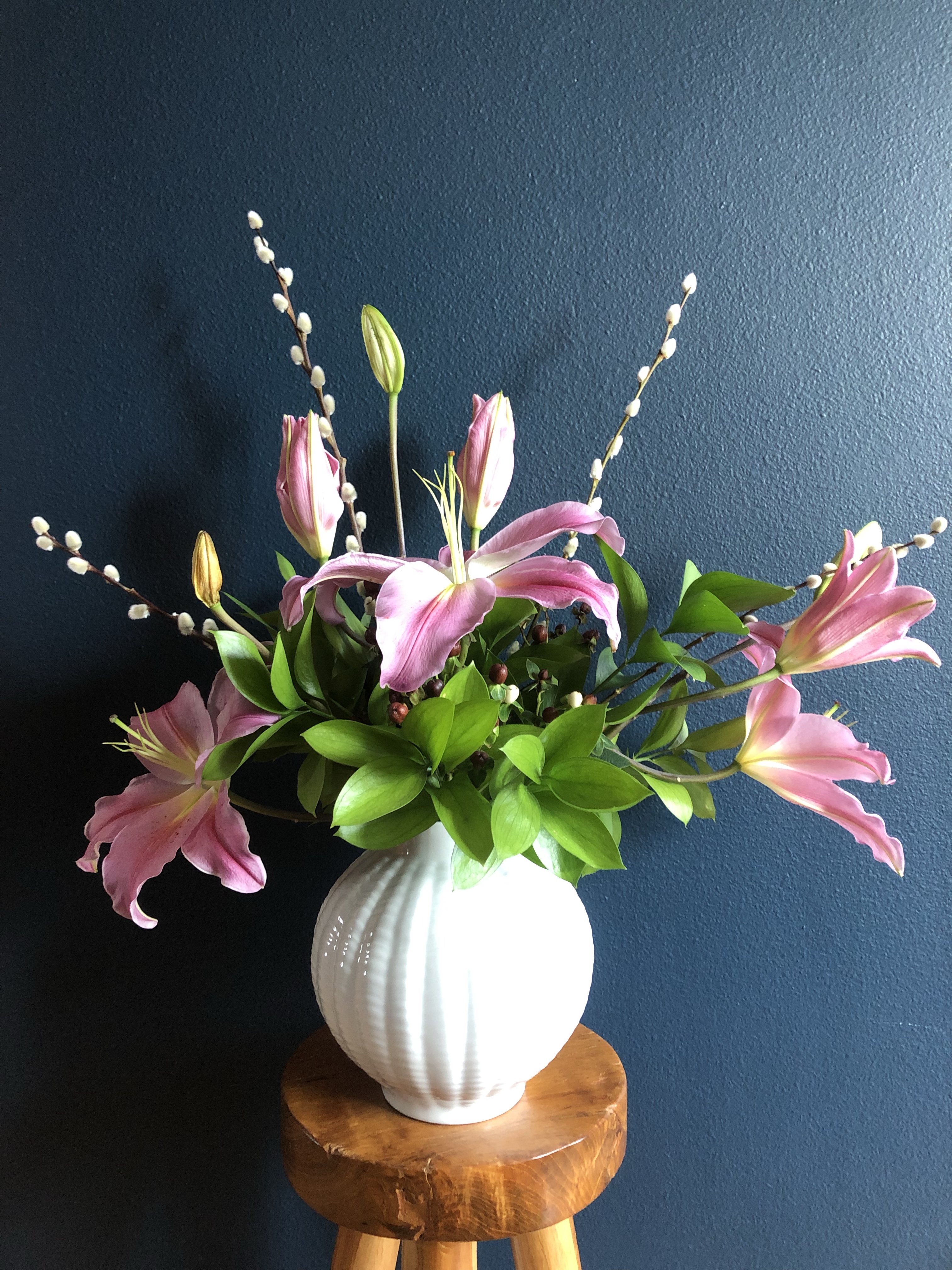 After two full weeks —aka eternity—the lilies finally deigned to bloom. By then nearly all the berries had turned brown, the pussy willow buds had either dropped off or begun to sprout—and the lilies weren’t even white. Pink! Sigh. But it’s good lesson in the importance of getting the timing right in floristry. And of […]
