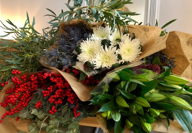 At Thanksgiving I told Lady I wasn’t getting a Christmas tree. [gasp; maternal gears start churning] Then I told her my plan to get Christmasy flowers instead. [whew] So that’s what I did today. Got up before dawn (which, let’s be honest, means about 8:00am in London in December), caught the bus to the Columbia […]